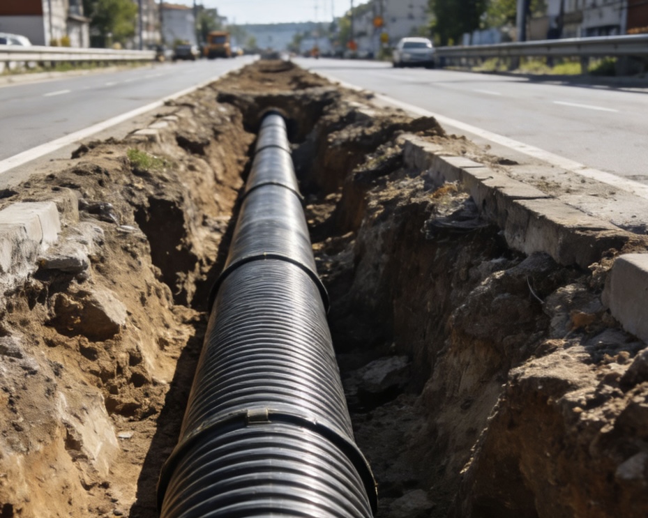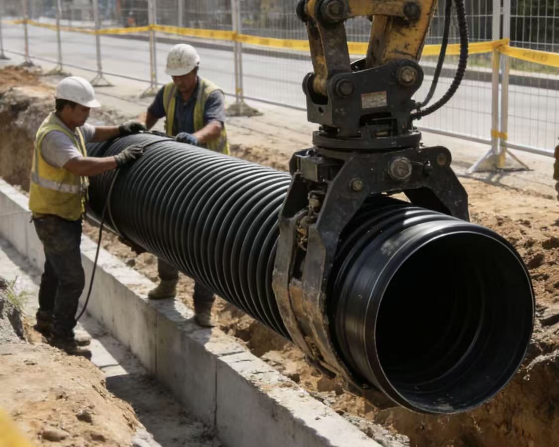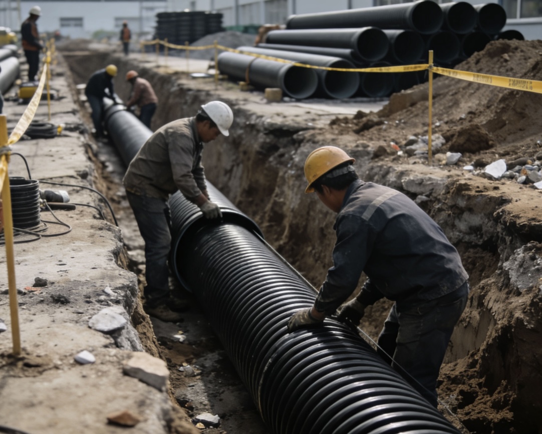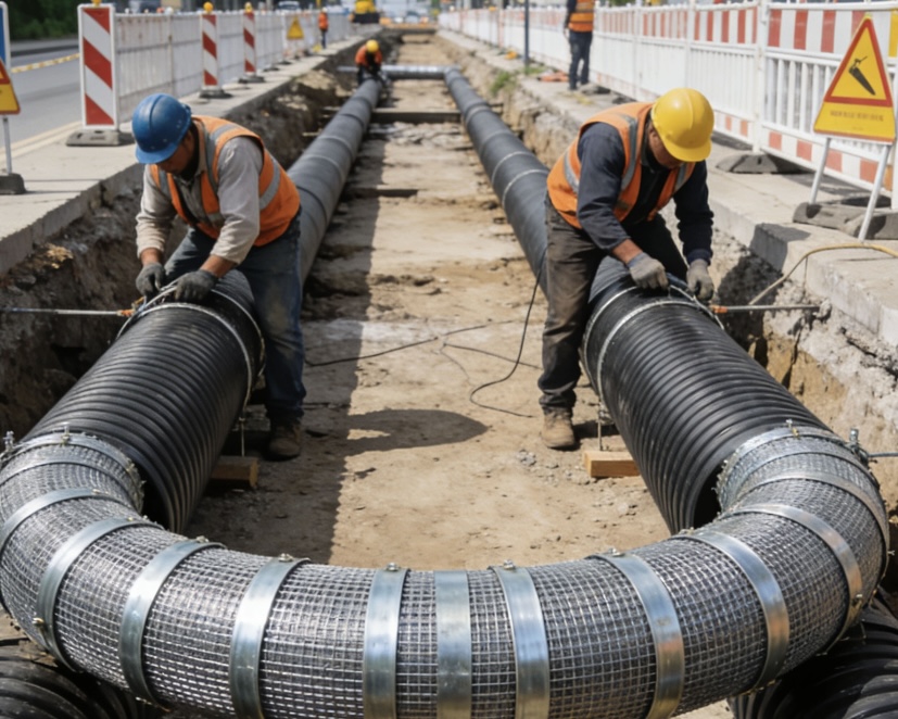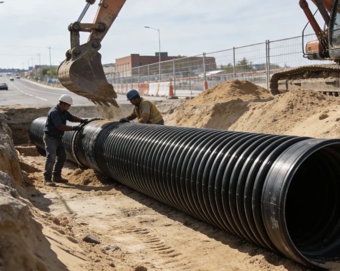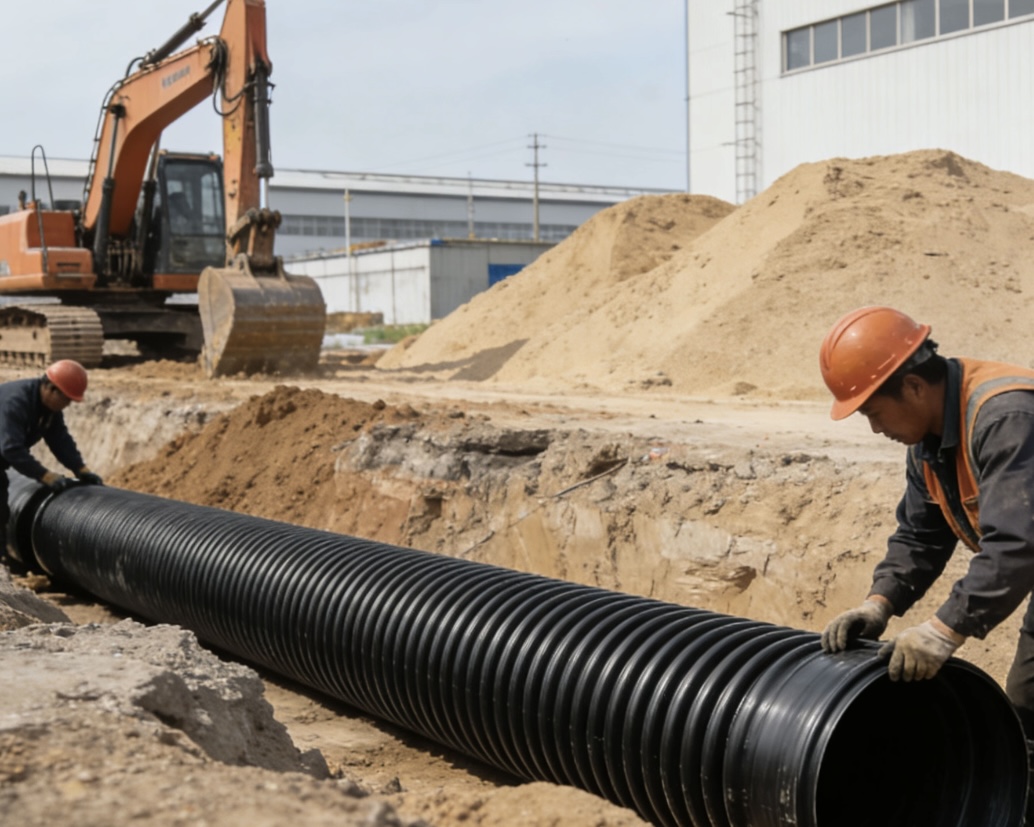 Adopts "U-shaped steel belt + HDPE" composite structure, combining steel's high strength with plastic's corrosion resistance. Higher ring stiffness, suitable for large-diameter, deep-burial, heavy-load road sections. Widely used in municipal main drainage, industrial sewage, tunnel drainage, road culverts and other key engineering projects.